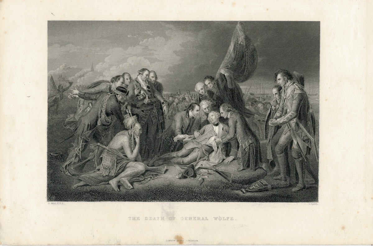 Antique Engraving Print, The Death of General Wolfe, 1836 ca., steel engraving, B. West, 52 x 16,5 cm.