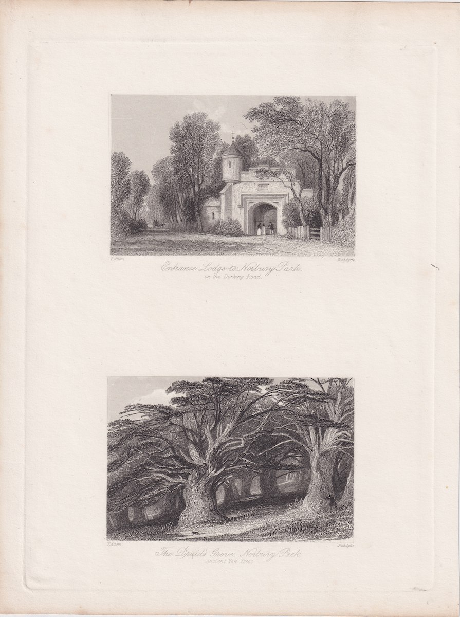 Antique Engraving Print, The Druid's Grove; Entrance Lodge, Norbury Park, 1845
