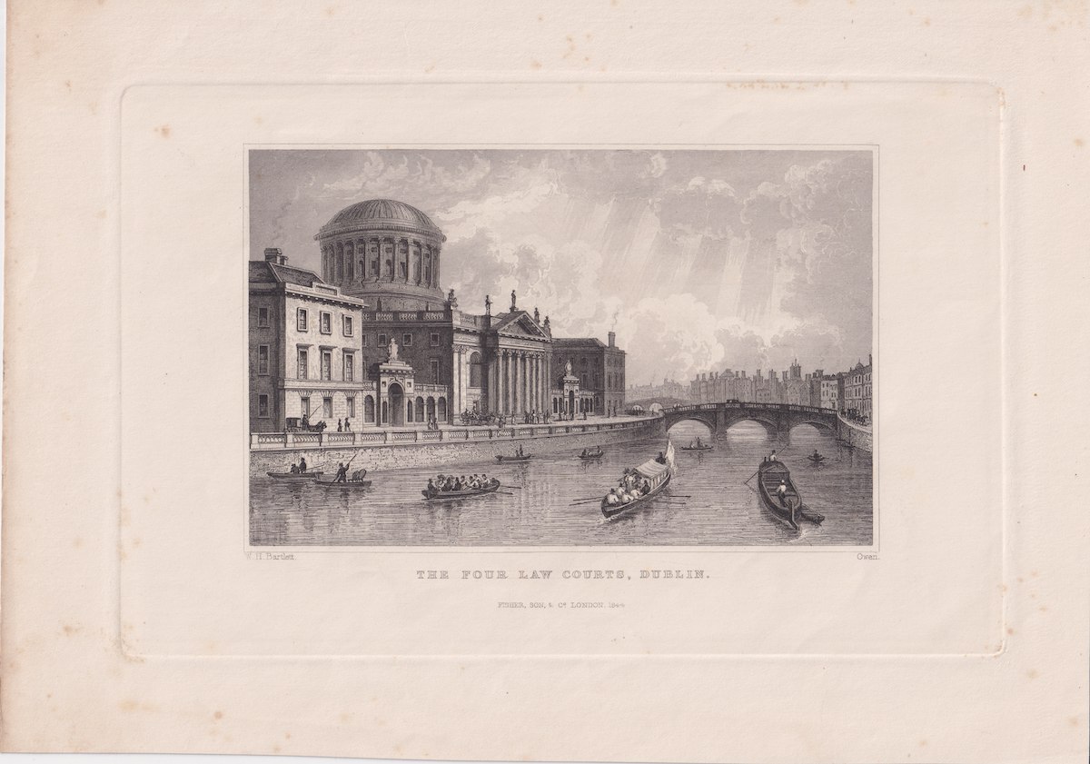 Antique Engraving Print, The Four Law Courts, Dublin, 1844, credit Antiche Curiosità©