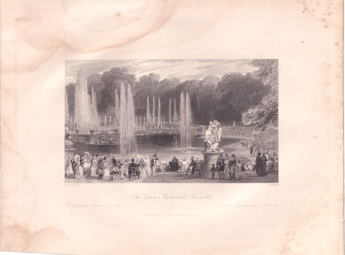 Antique Engraving Print, The Grand Waterworks, Versailles, 1835, credit Antiche Curiosità©