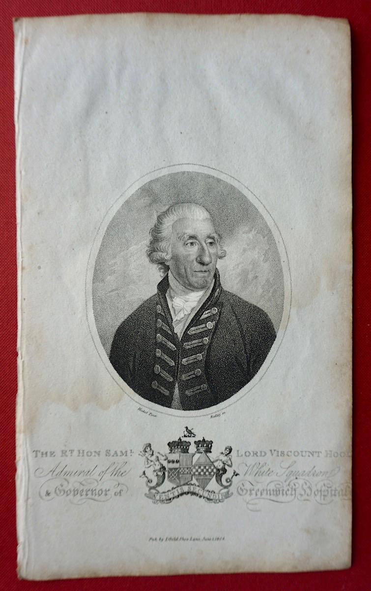 Antique Engraving Print, The Hon. Sam.l Lord Viscount Hood, 1804, 23,3 x 13,8 cm. Engraved by Ridley Sc. 20,1 x 13,8 cm.