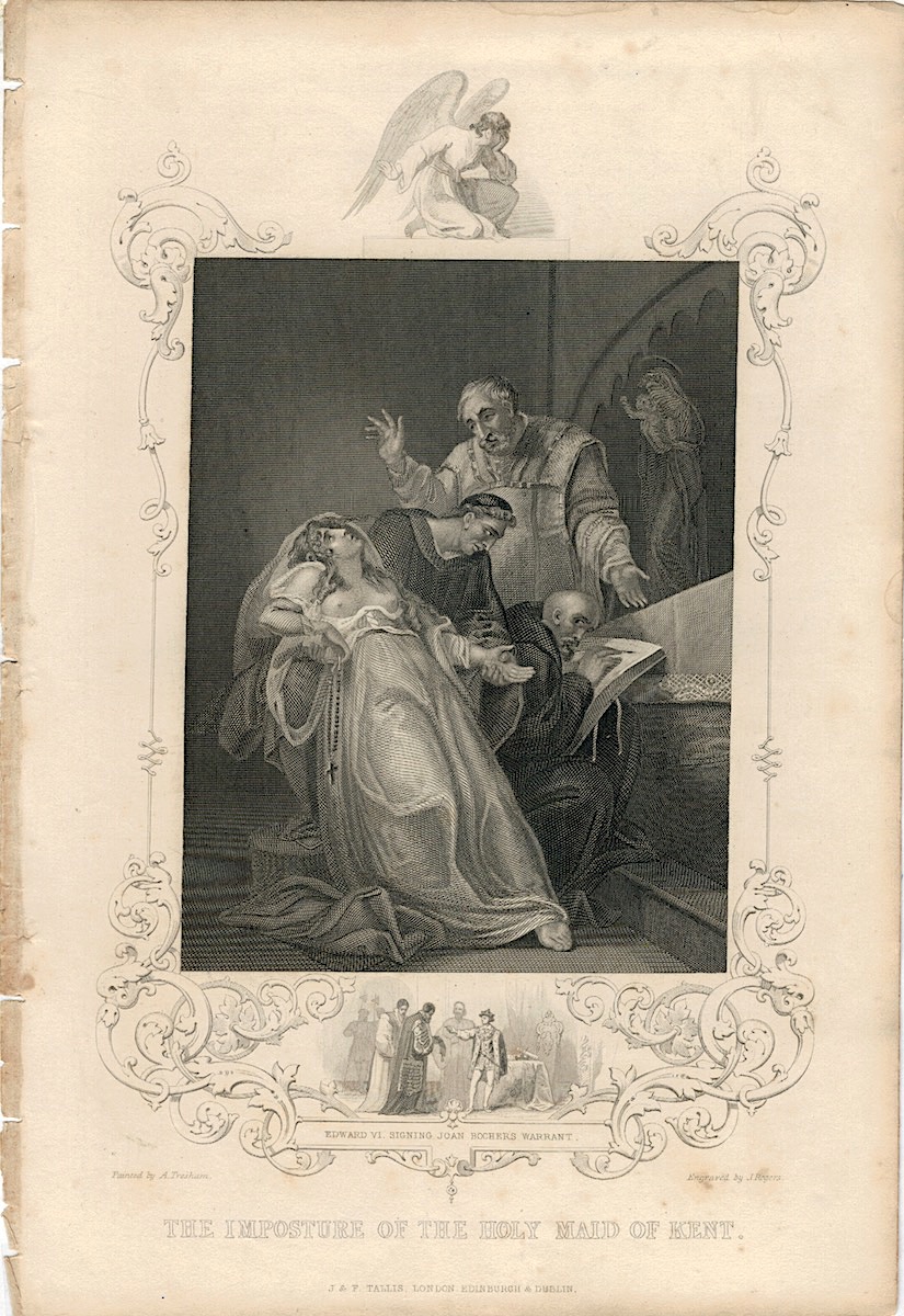 Antique Engraving Print, The Imposture of the Holy Maid of Kent, 1830, cm. 26,5 x 18. Engraved by Rogers, painted by Tresham.