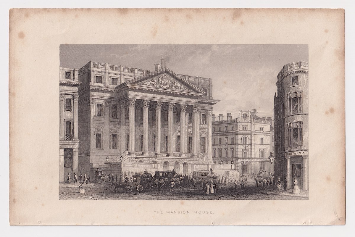 Antique Engraving Print, The Mansion House, 1830 ca. credit Antiche Curiosità©