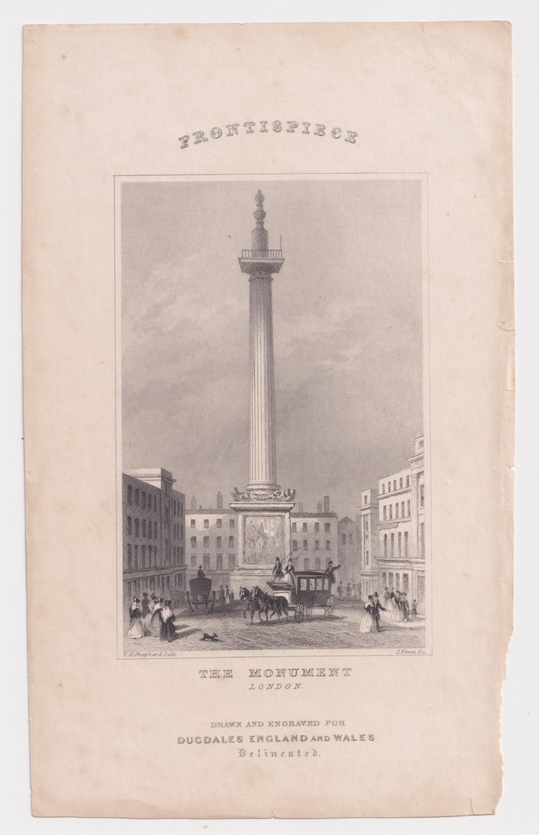 Antique Engraving Print, The Monument, London, 1830 ca. 22 x 13,5 cm.