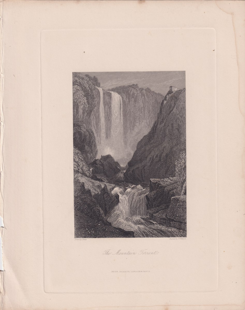 Antique Engraving print, The Mountain Torrent, 1850 ca. 12.4 x 26.9 cm.