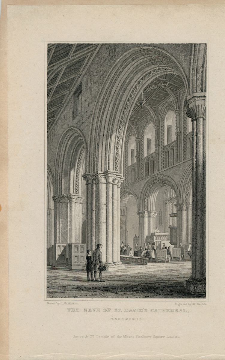 Antique Engraving Print, The Nave of St. David’s Cathedral, 1831, cm. 20,5 x 13. Drawn by Gastineau, engraved by Deeble.
