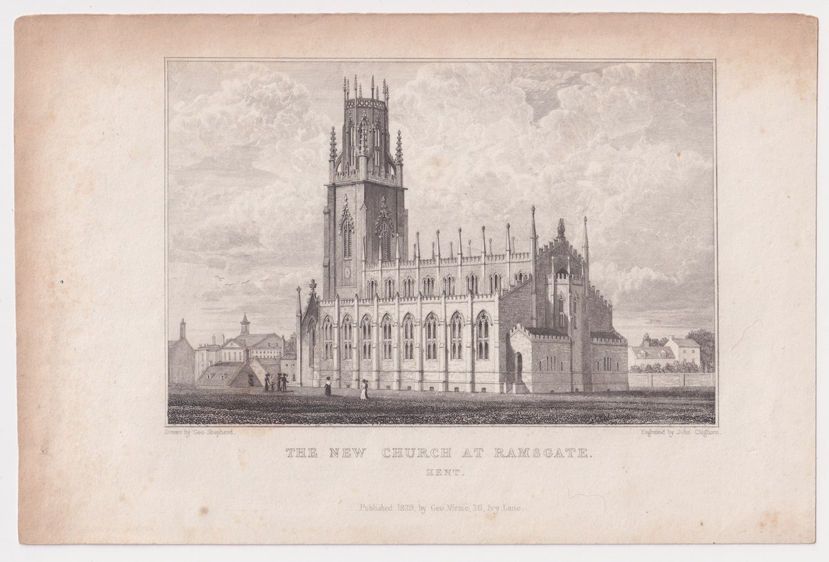 Antique Engraving Print, The New Church at Ramsgate, Kent, 1829, credit Antiche Curiosità©