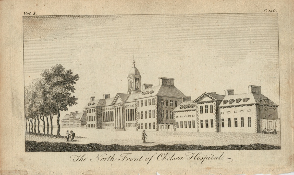 Antique Engraving Print, The North Front of Chelsea Hospital, 1770 ca., credit Antiche Curiosità©