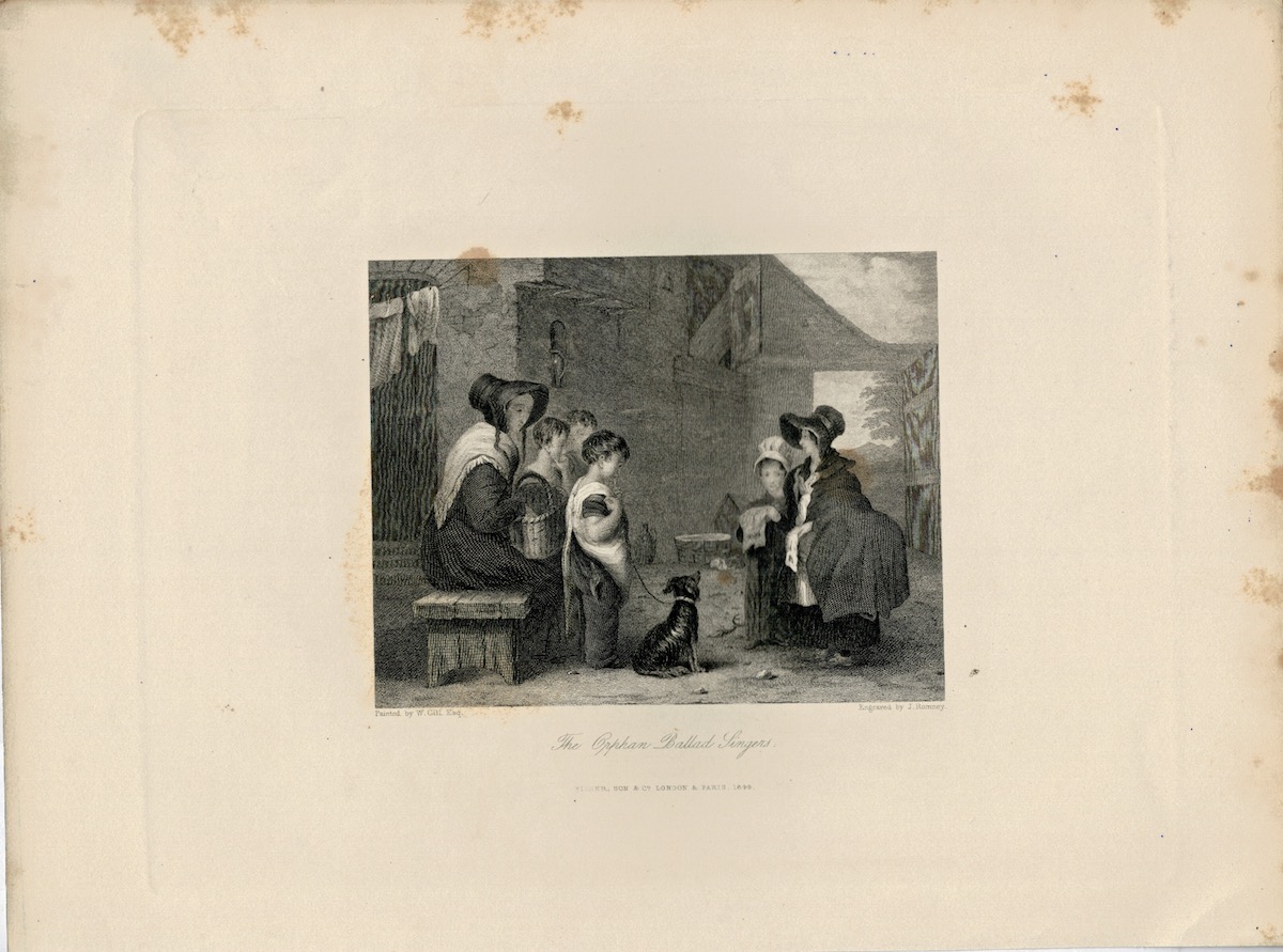 Antique Engraving Print, The Orphan’s Ballad Singers, 1844, credit Antiche Curiosità©