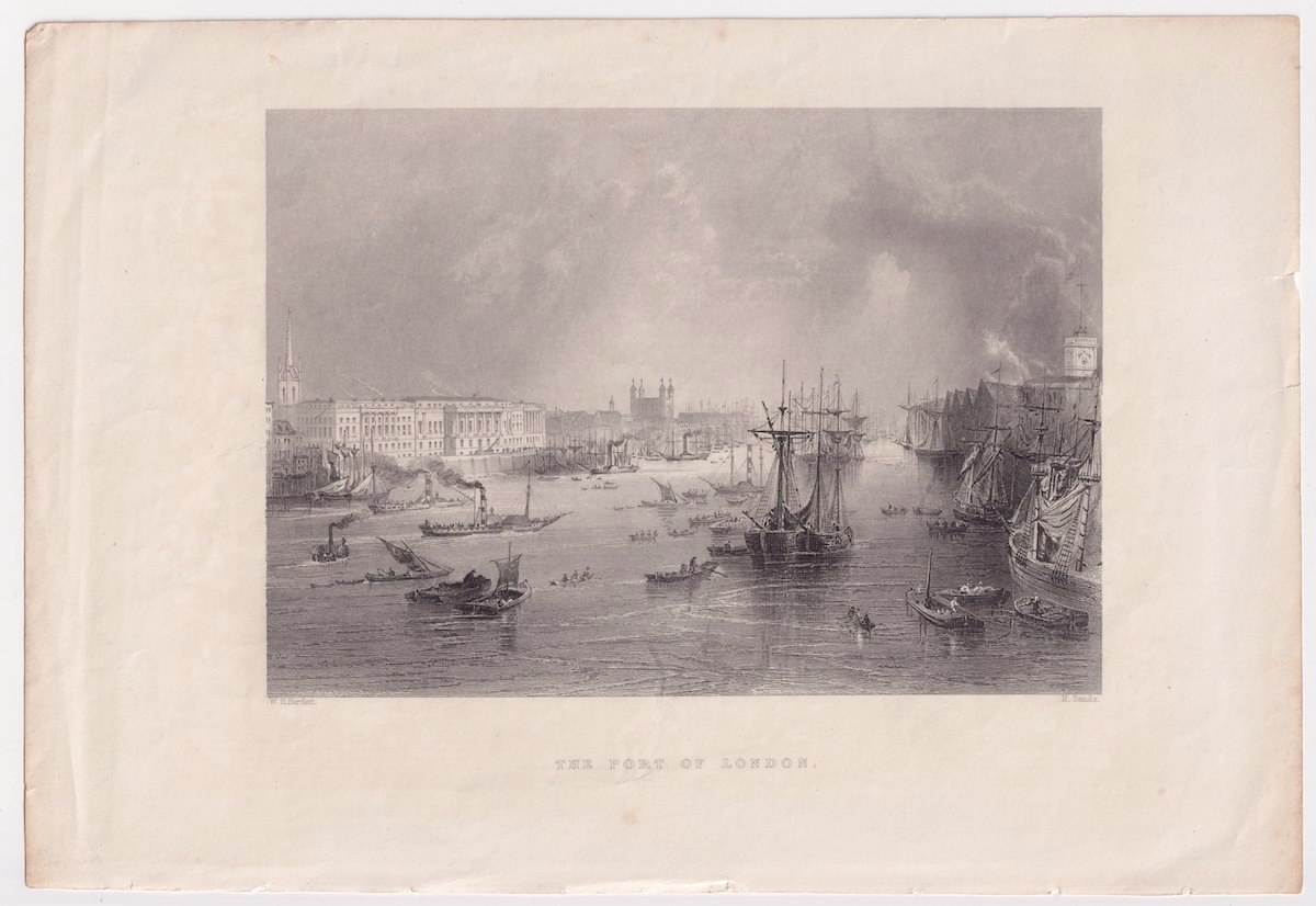 Antique Engraving Print, The Port of London, 1842, R. Sands, W.H. Bardett, 26,3 x 18,1 cm.