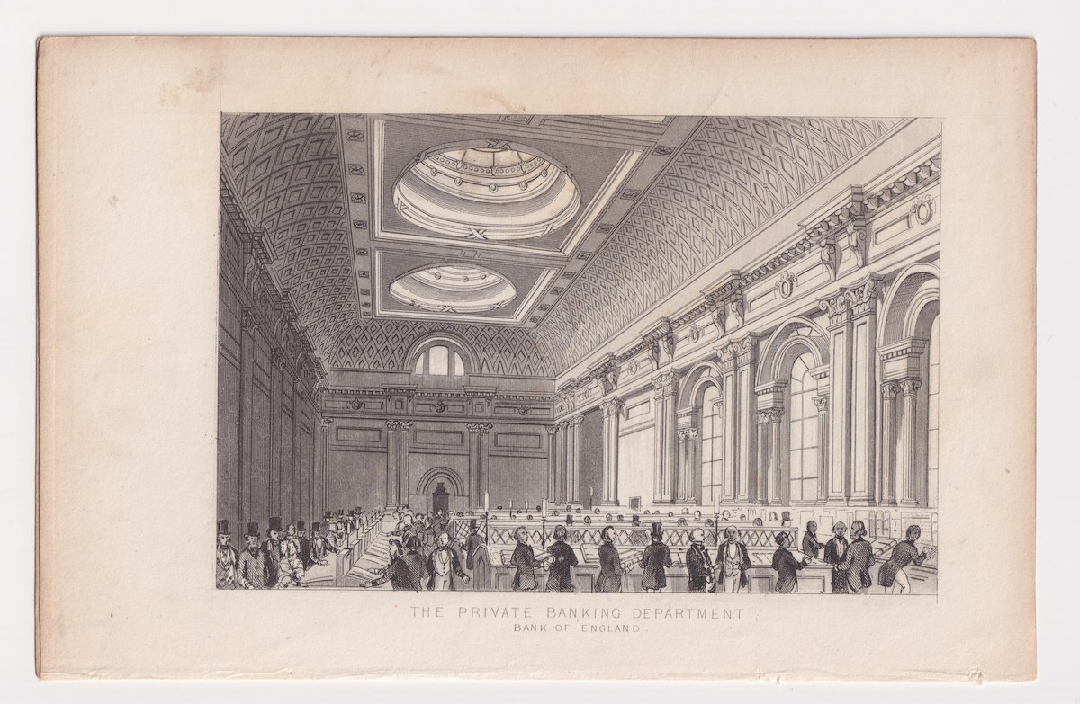 Antique Engraving Print, The Private Banking Department, 1830, credit Antiche Curiosità©