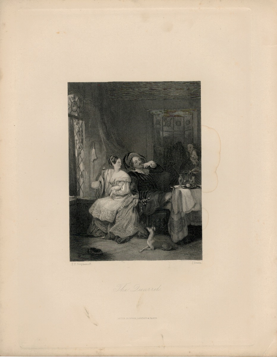 Antique Engraving Print, The Quarrel, 1849, engraved by J.Brain after a picture by E.P. Stephanoff, cm. 26,8 x 21.