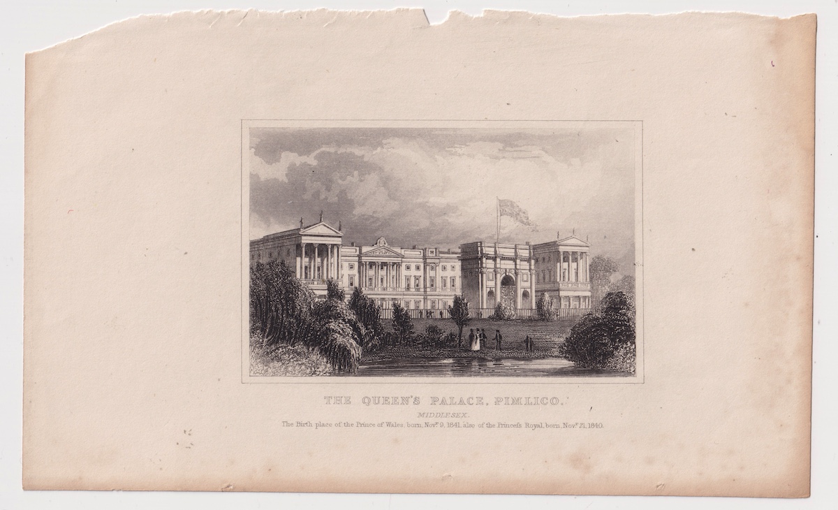 Antique engraving Print, The Queen’s Palace, 1840, credit Antiche Curiosità©