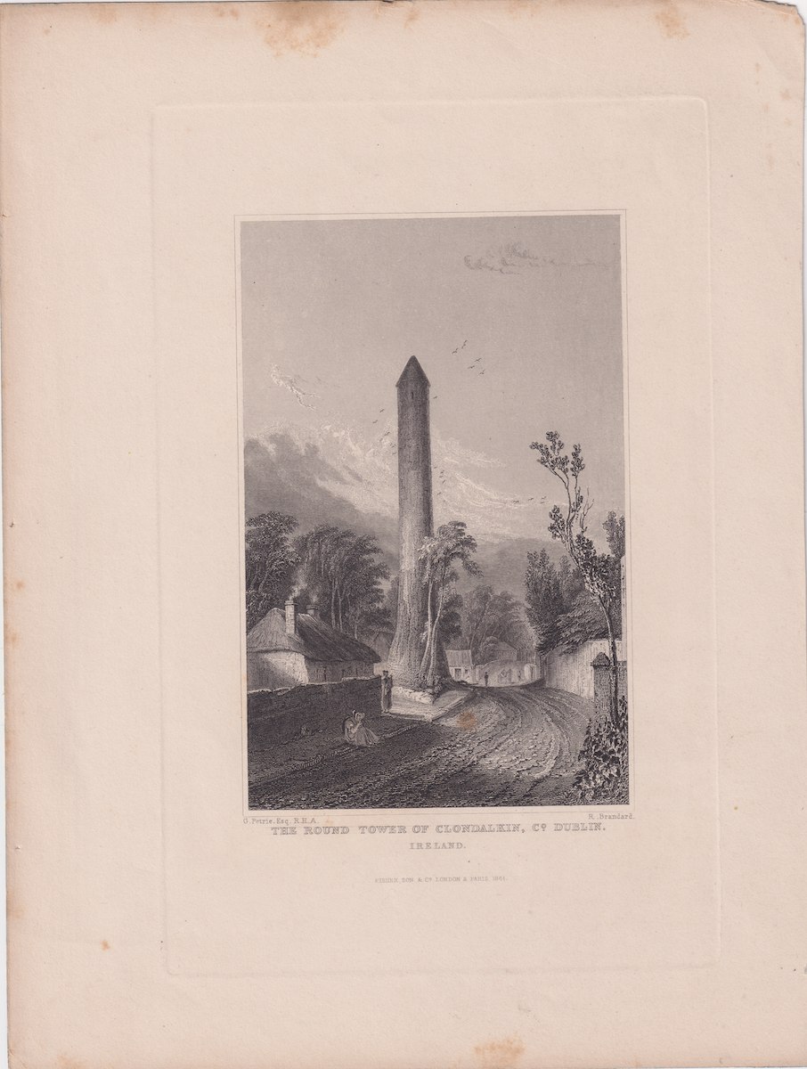 Antique Engraving Print, The round Tower of Clondalkin, Dublin, 1841, 20.6 x 27.5 cm.