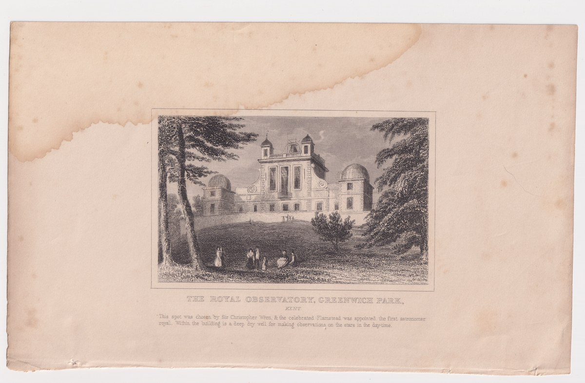 Antique Engraving Print, The Royal Observatorym Greenwich Park, 1830, credit Antiche Curiosità©