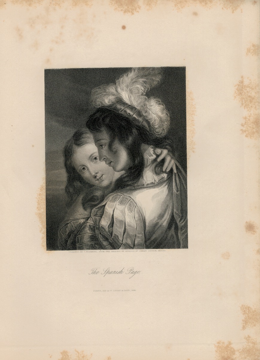 Antique Engraving Print, The Spanish Page, 1844, cm. 27 x 19,5, engraved by T. Woolnoth from the original by Murillo at Christ Church Oxford.