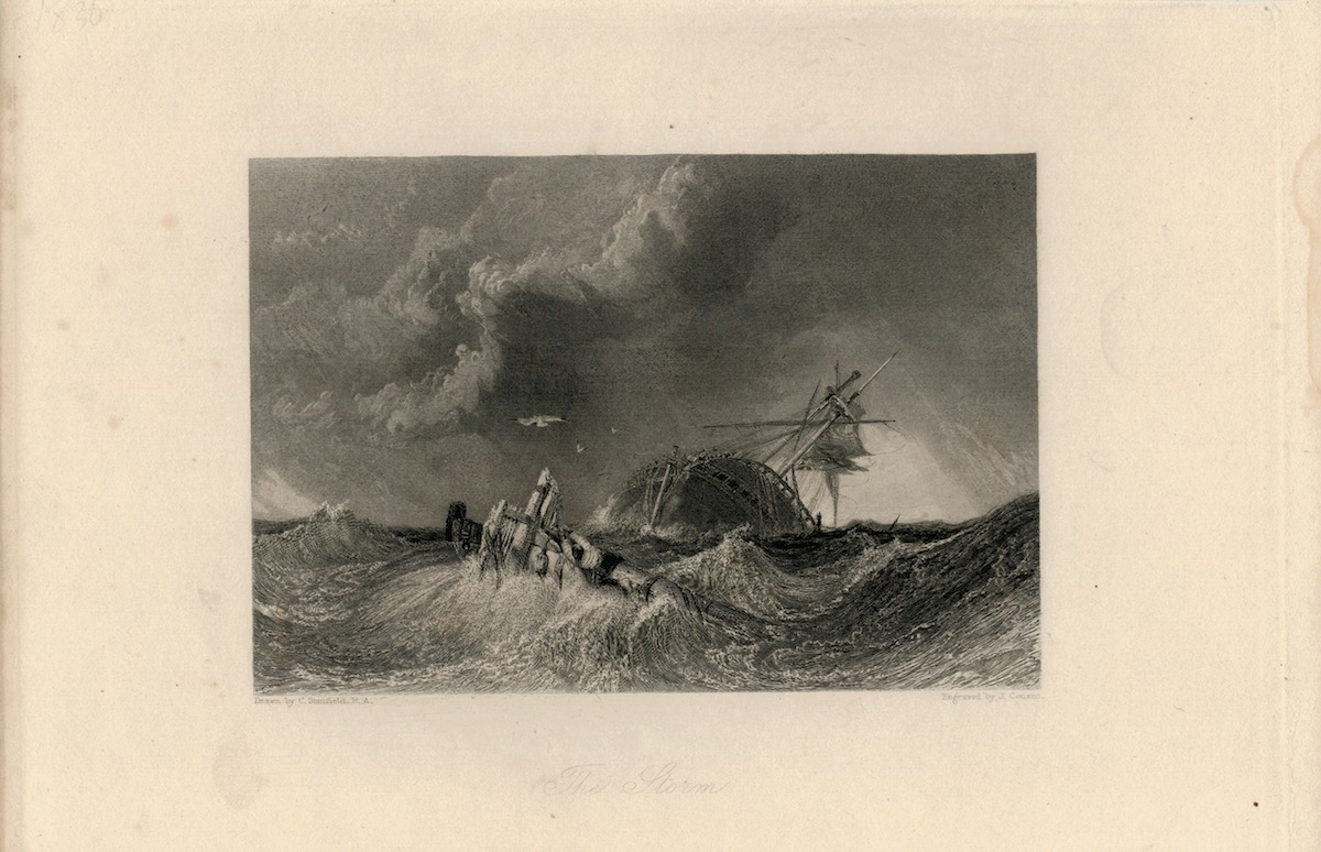 Antique Engraving Print, The Storm, 1836, 23 x 15,9 cm. Engraved by J. Cousen.