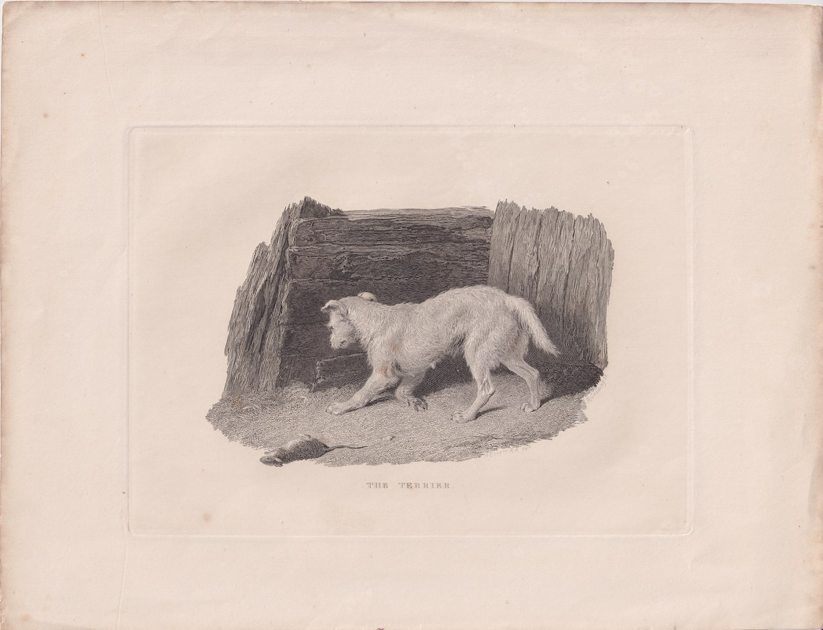Antique Engraving Print, The Terrier, 1830, 28.2 x 21.5 cm.