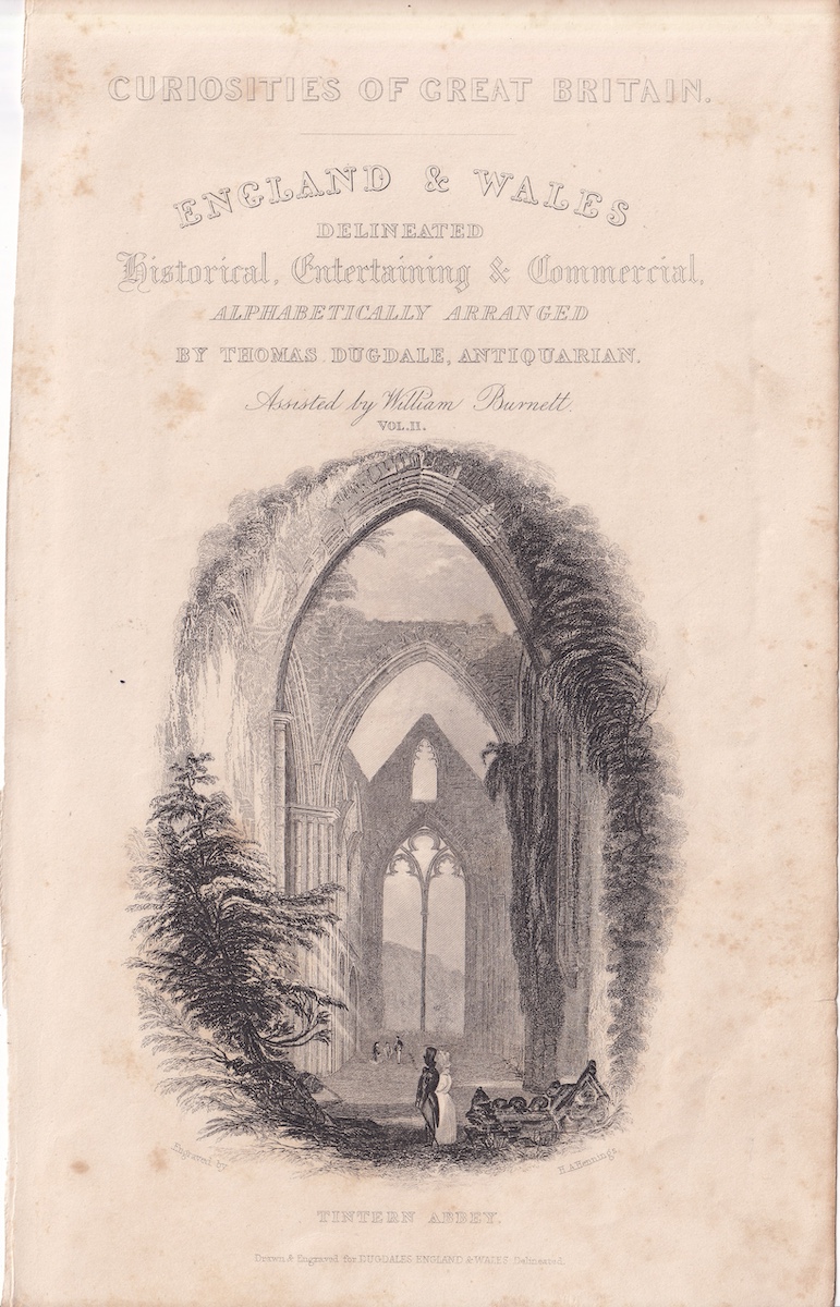 Antique Engraving Print, Tintern Abbey, 1840 ca., credit Antiche Curiosità©