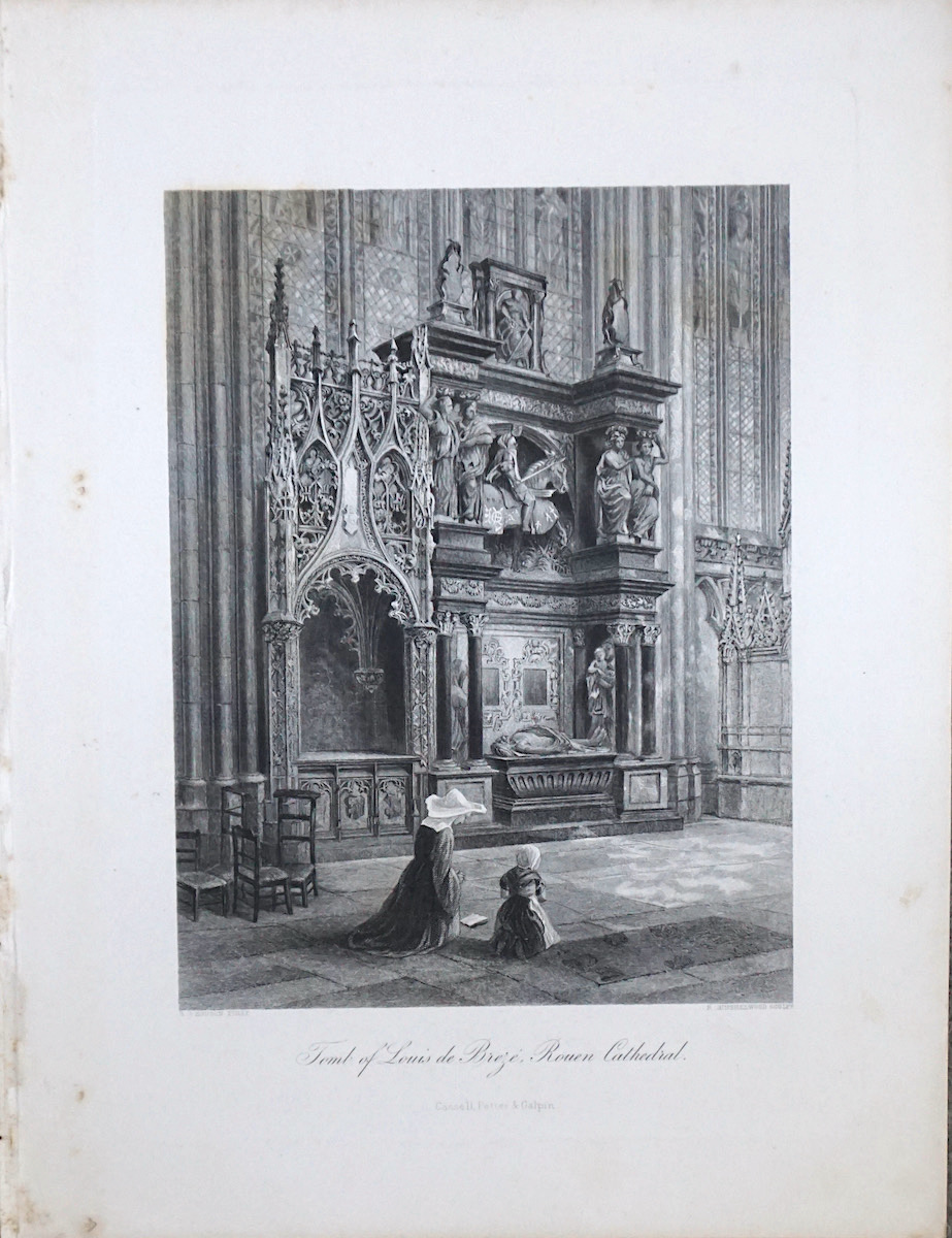 Antique Engraving Print, Tomb of Louis de Brezé. Rouen Cathedral, 1876, 31.5 x 24.4 cm.