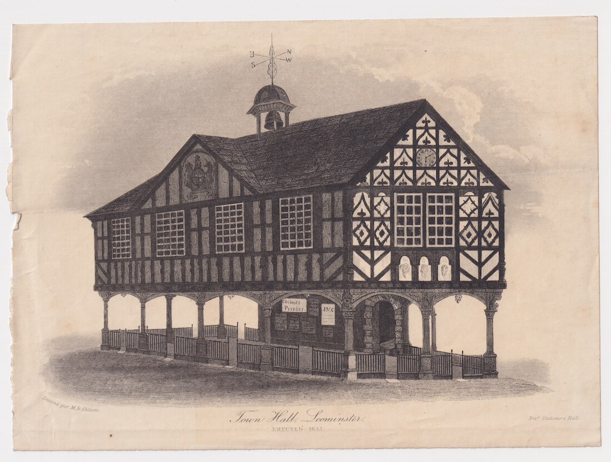 Antique Engraving Print, Town Hall Seominster, 1830 ca. credit Antiche Curiosità©