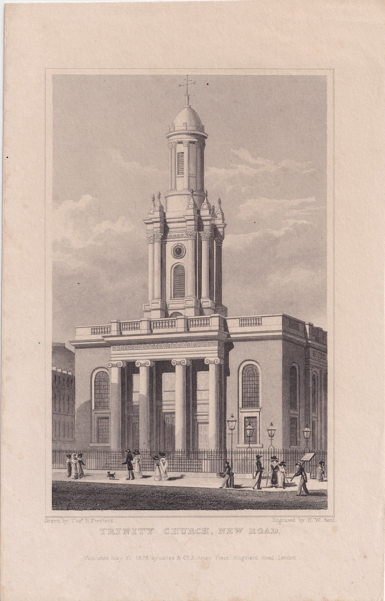 Antique Engraving Print, Trinity Church, 1828, 12.6 x 20 cm.