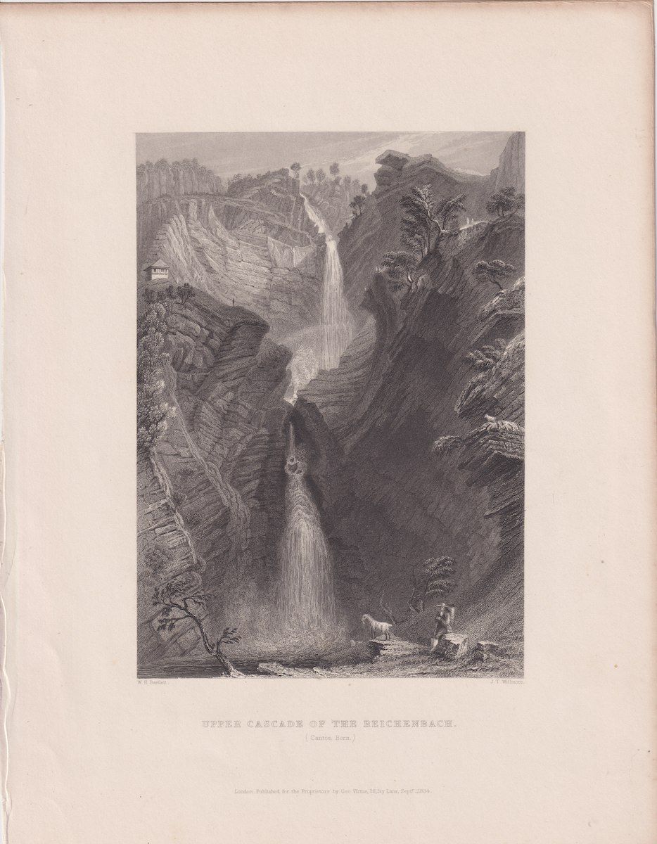 Antique Engraving Print, Upper Cascade of the Reichenbach, 1834