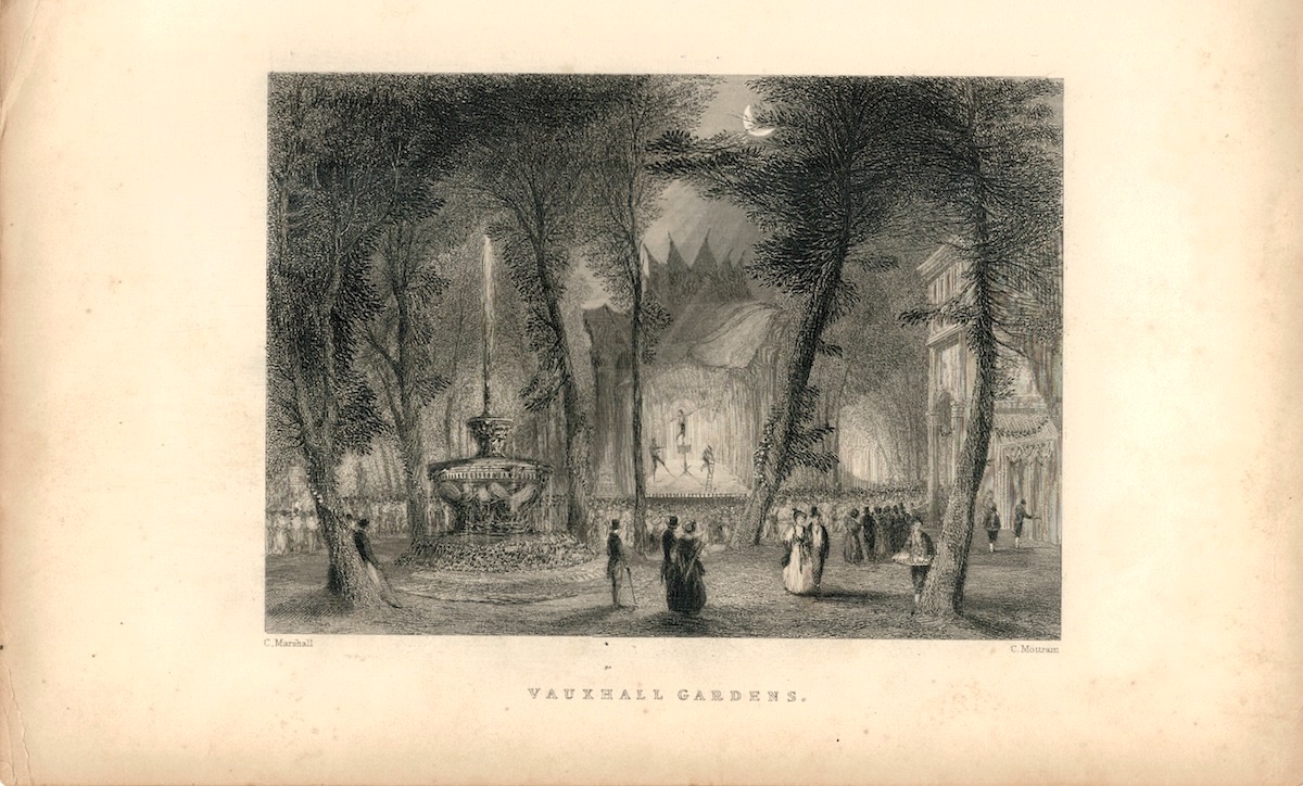 Antique Engraving Print, Vauxhall Gardens, 1838, credit Antiche Curiosità©