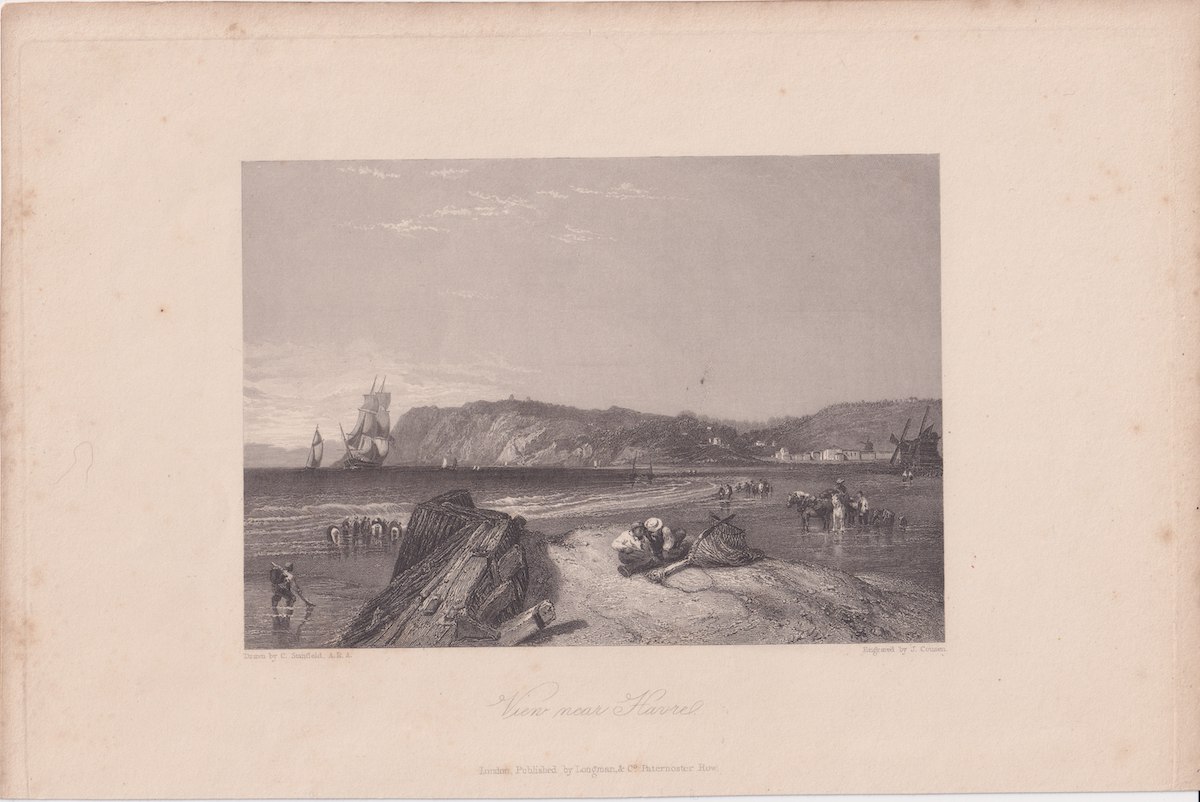 Antique Engraving Print, View near Havre, 1845, credit Antiche Curiosità©