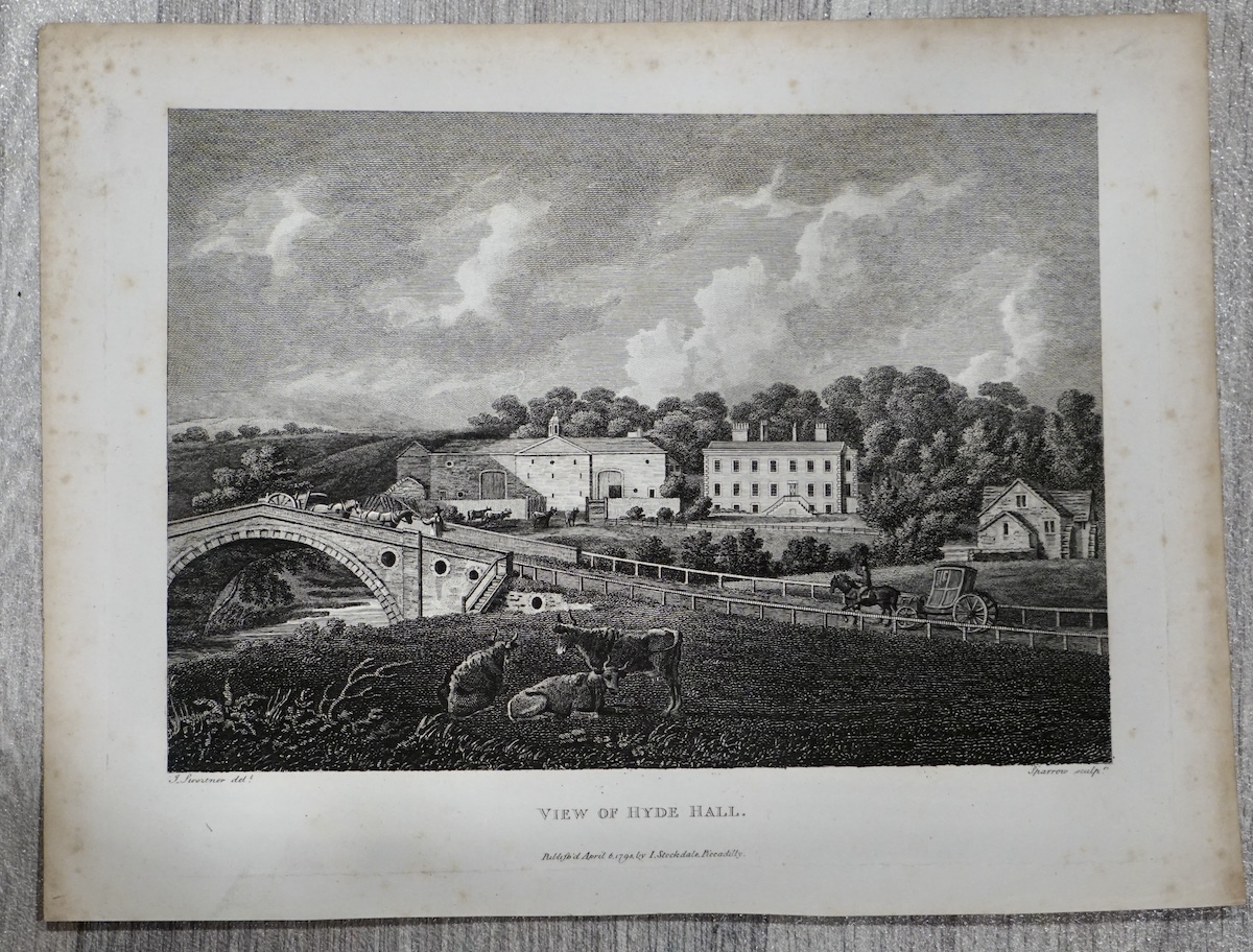 Antique Engraving Print, View of Hyde Hall, 1795, antiche Curiosità©