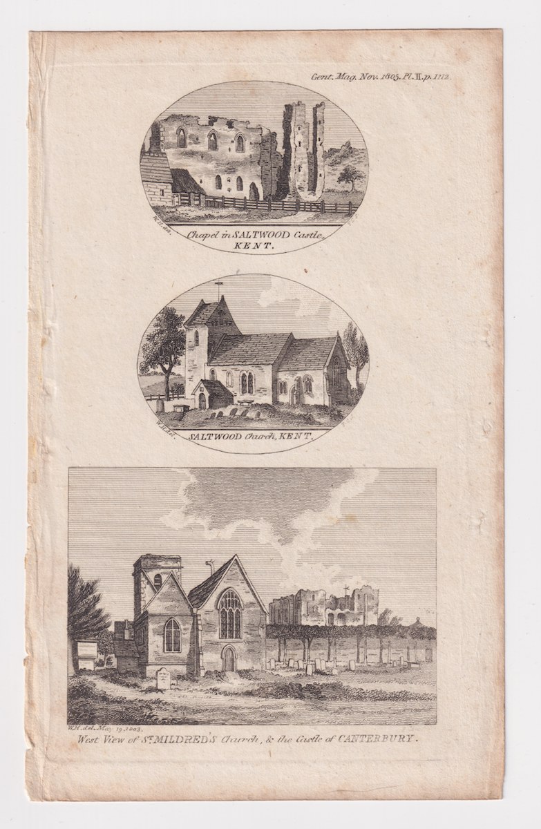 Antique Engraving Print, View of St. Mildred’s Church & the Castle of Canterbury, 1803, credit Antiche Curiosità©