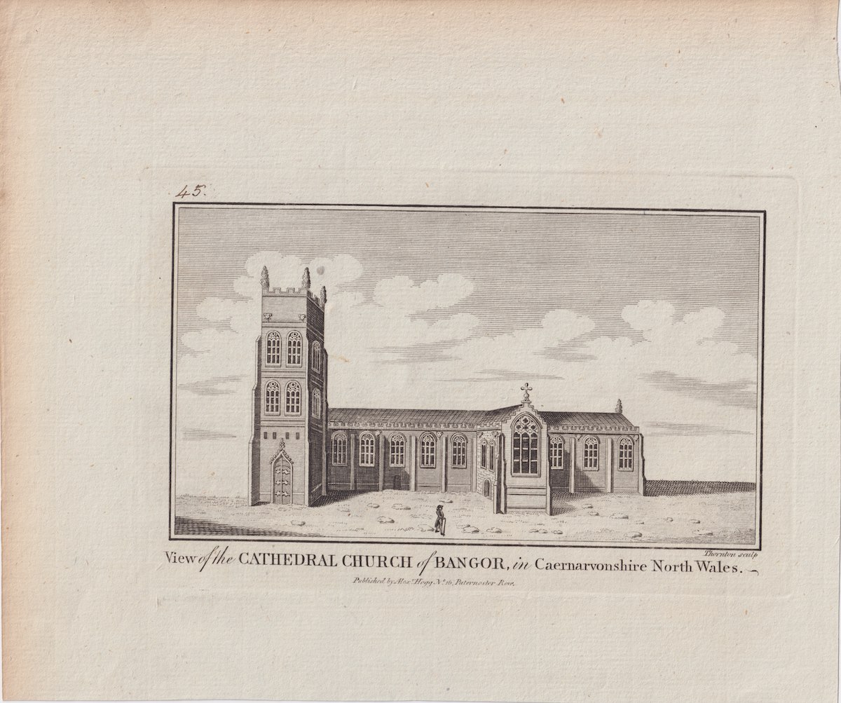 Antique Engraving Print, View of the Cathedral Church of Bangor, 1779 ca. 22,5 x 19 cm.