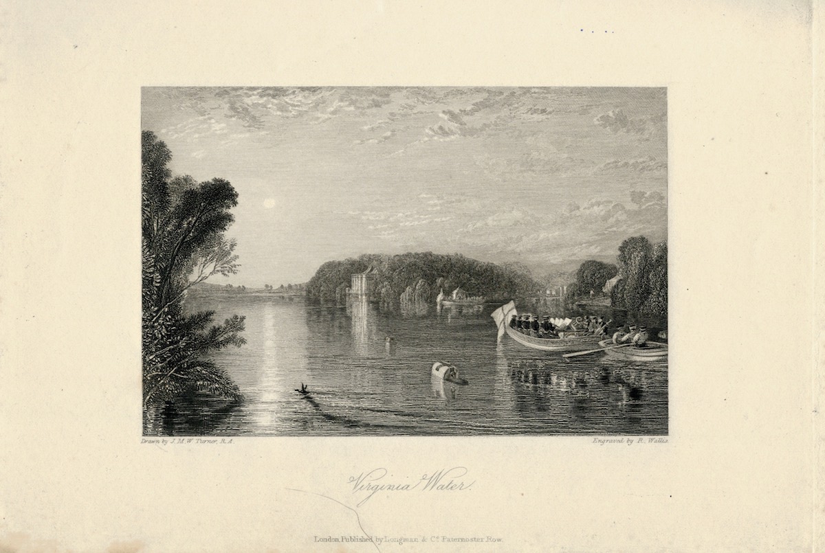 Antique Engraving Print, Virginia Water. 1836, credit Antiche Curiosità©