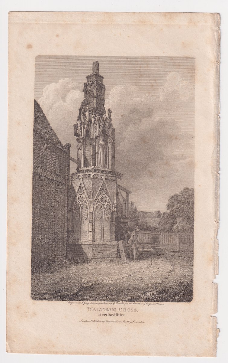 Antique Engraving Print, Waltham Cross, 1803, 21 x 13.1 cm.
