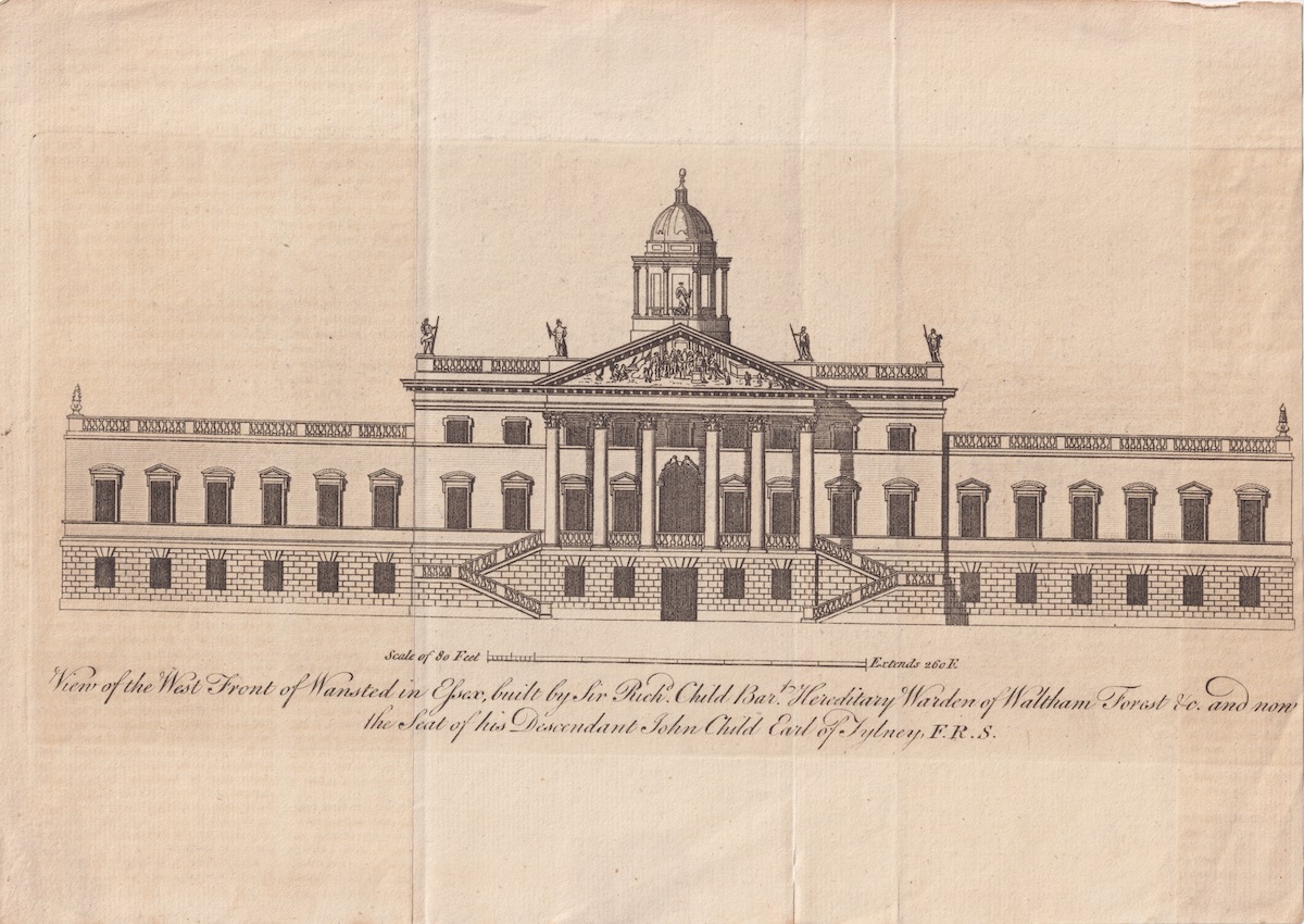 Antique Engraving Print, Wansted, 1725, 27.6 x 19.8 cm.