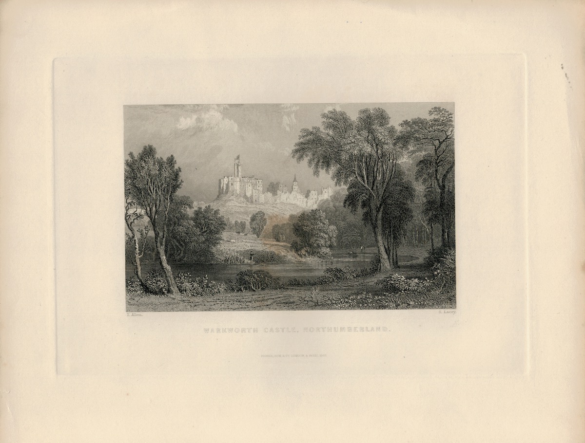 Antique Engraving Print, Warkworth, Caste, Northumberland, 1837, credit Antiche Curiosità©