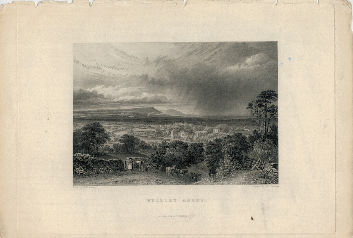 Antique Engraving Print, Whalley Abbey, 1836, credit Antiche Curiosità©