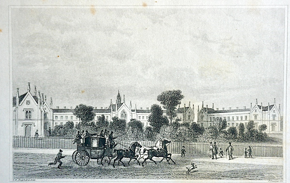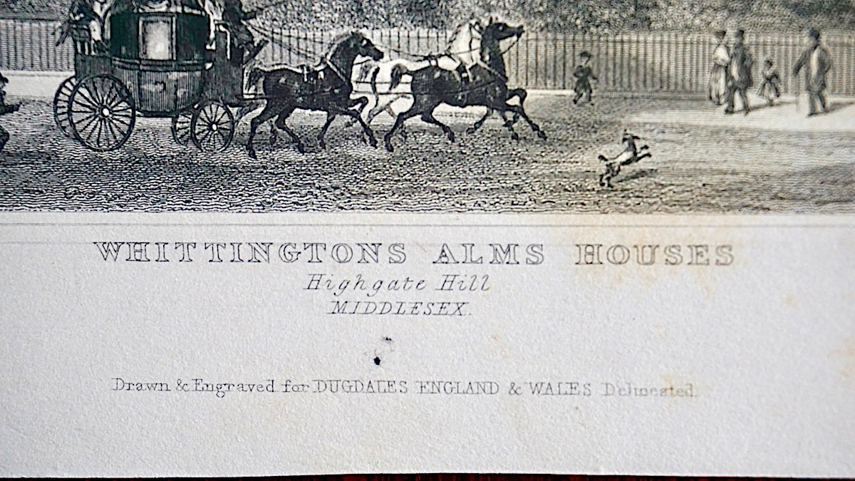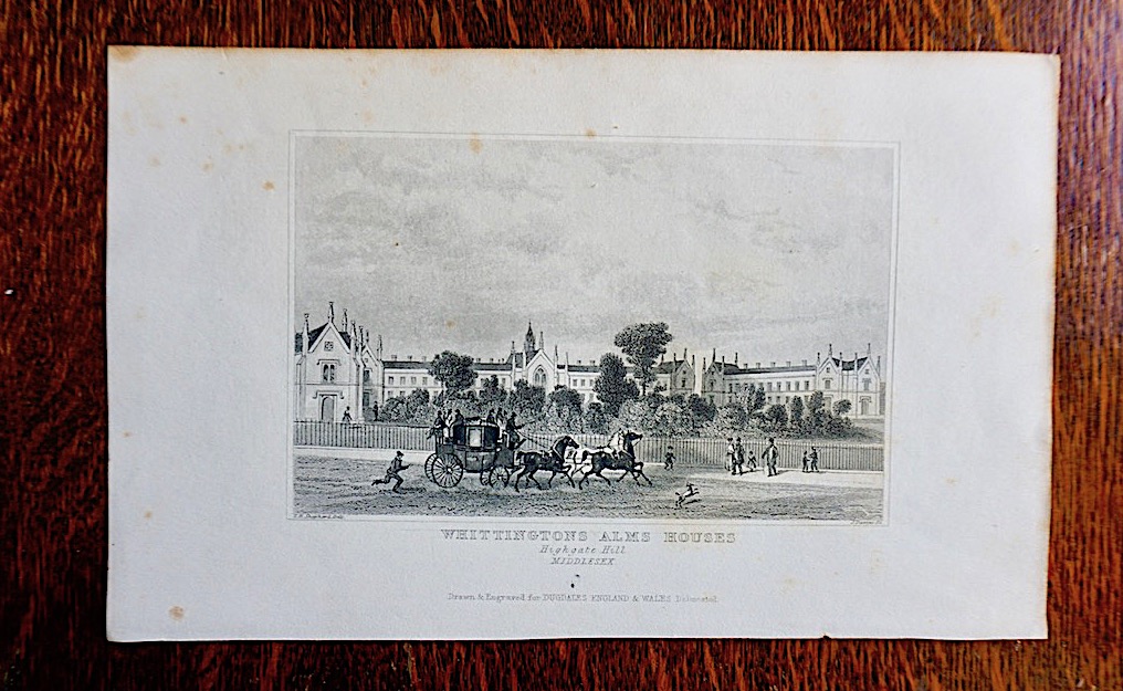 Antique Engraving Print, “Whittingtons Alms Houses, Middlesex”, 1840