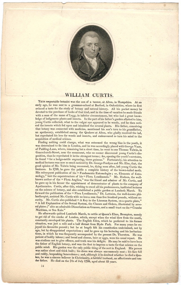Antique Engraving Print, William Curtis, 1770 ca., credit Antiche Curiosità©