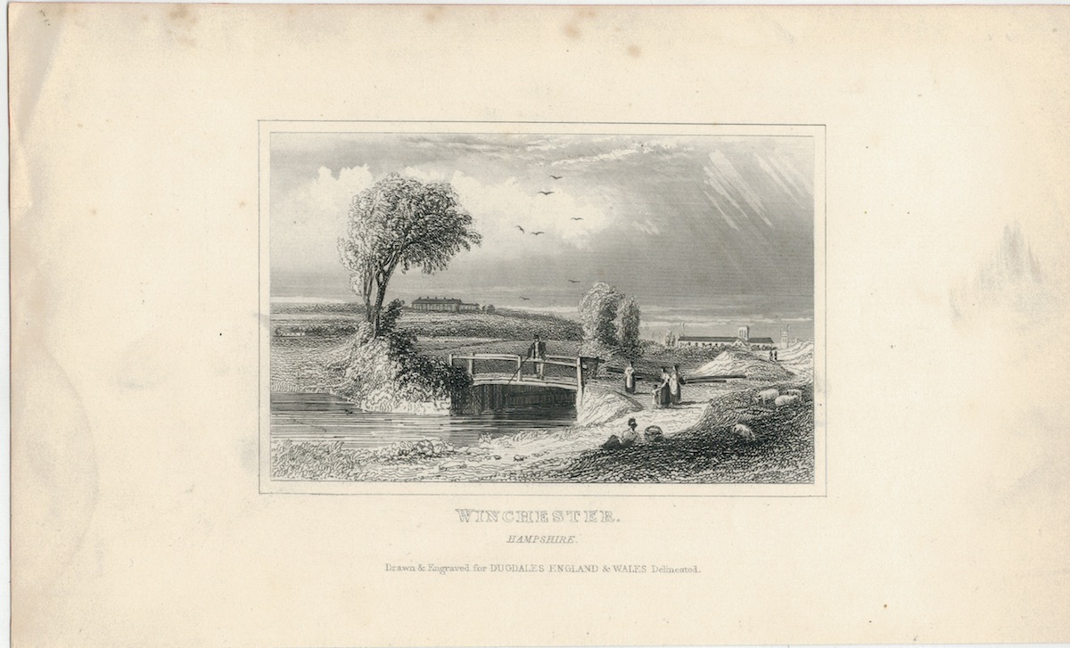 Antique Engraving Print, Winchester, Hampshire, Dugdales 1830, credit Antiche Curiosità©