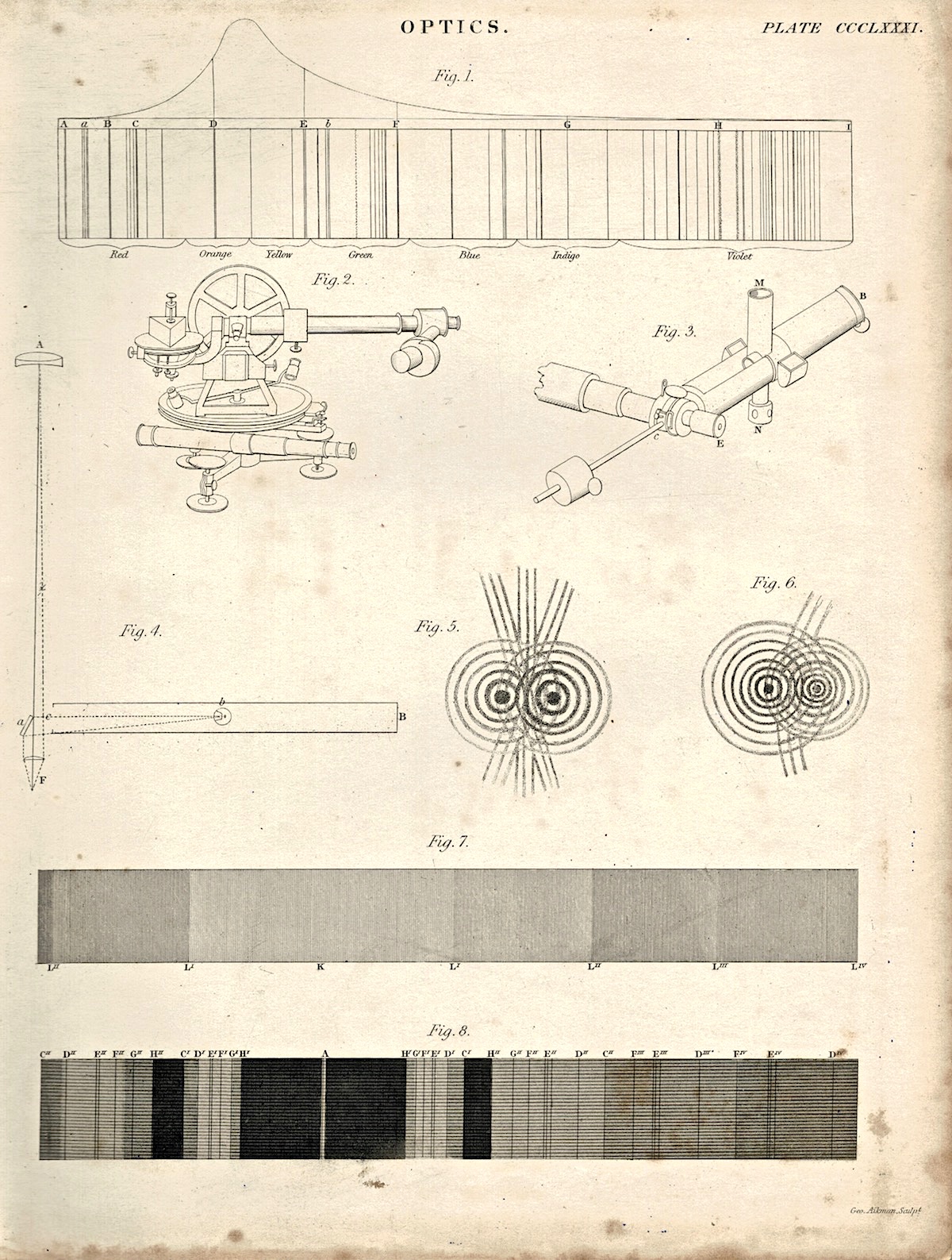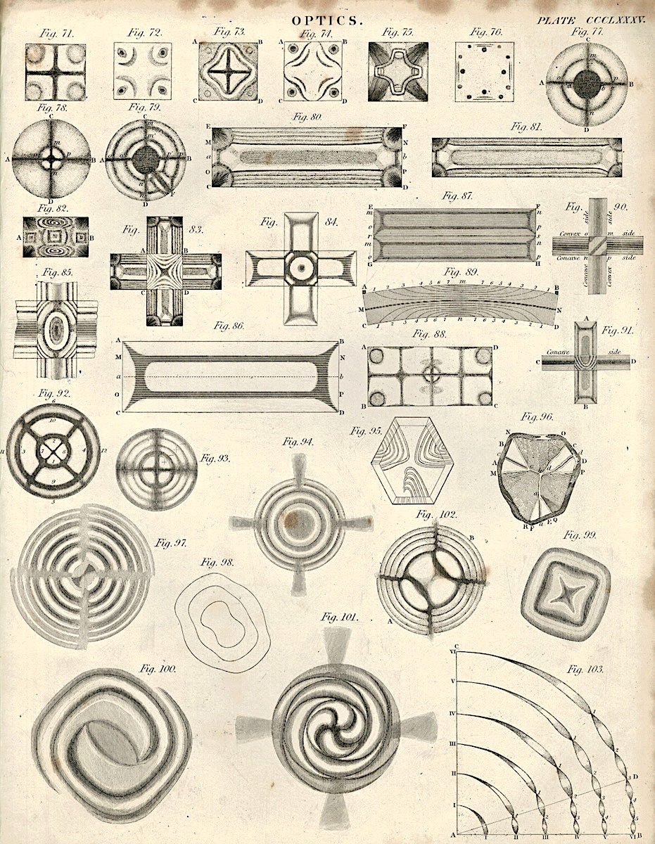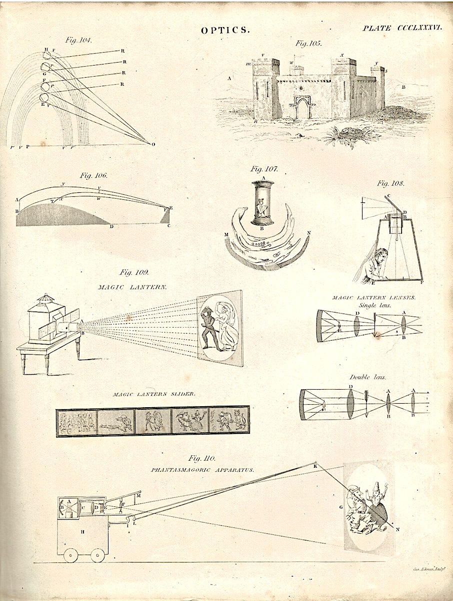 Antique Engraving Print Optic, six plates, 1850 ca.
