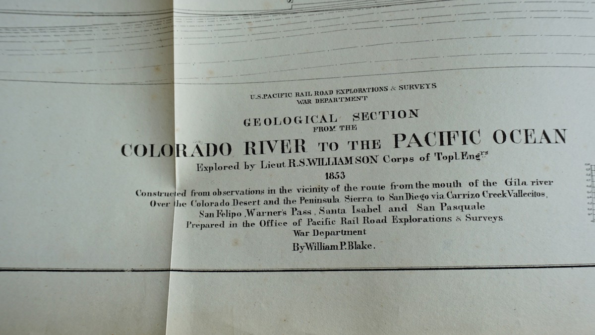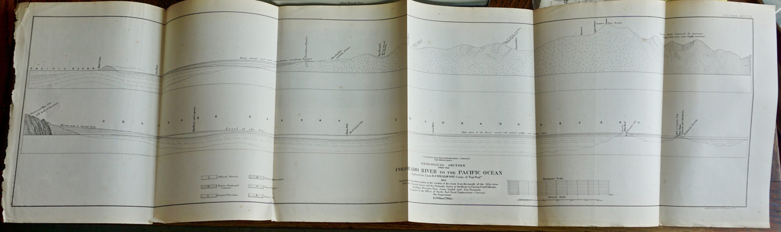 Antique Geological Section from the Colorado River to the Pacific Ocean, explored by Lieut R.S. Williamson, 1853, cm. 99 x 28.