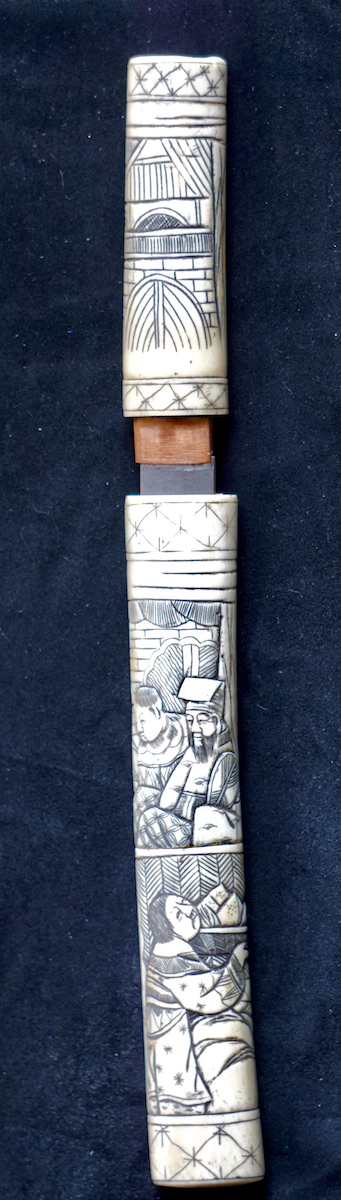 Antique Japanese Tanto Samurai Hand carved Ox Bone