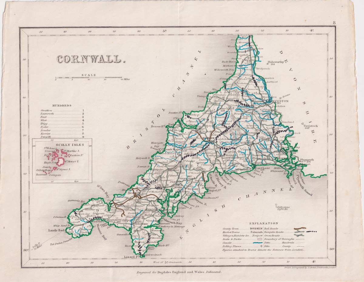 Antique Map, Cornwall, 1845, credit Antiche Curiosità©