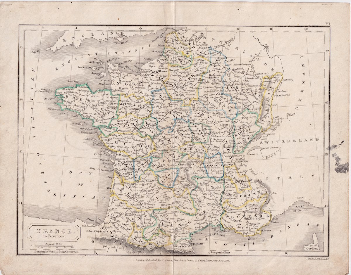 Antique Map, France in provinces, 1826, credit Antiche Curiosità©