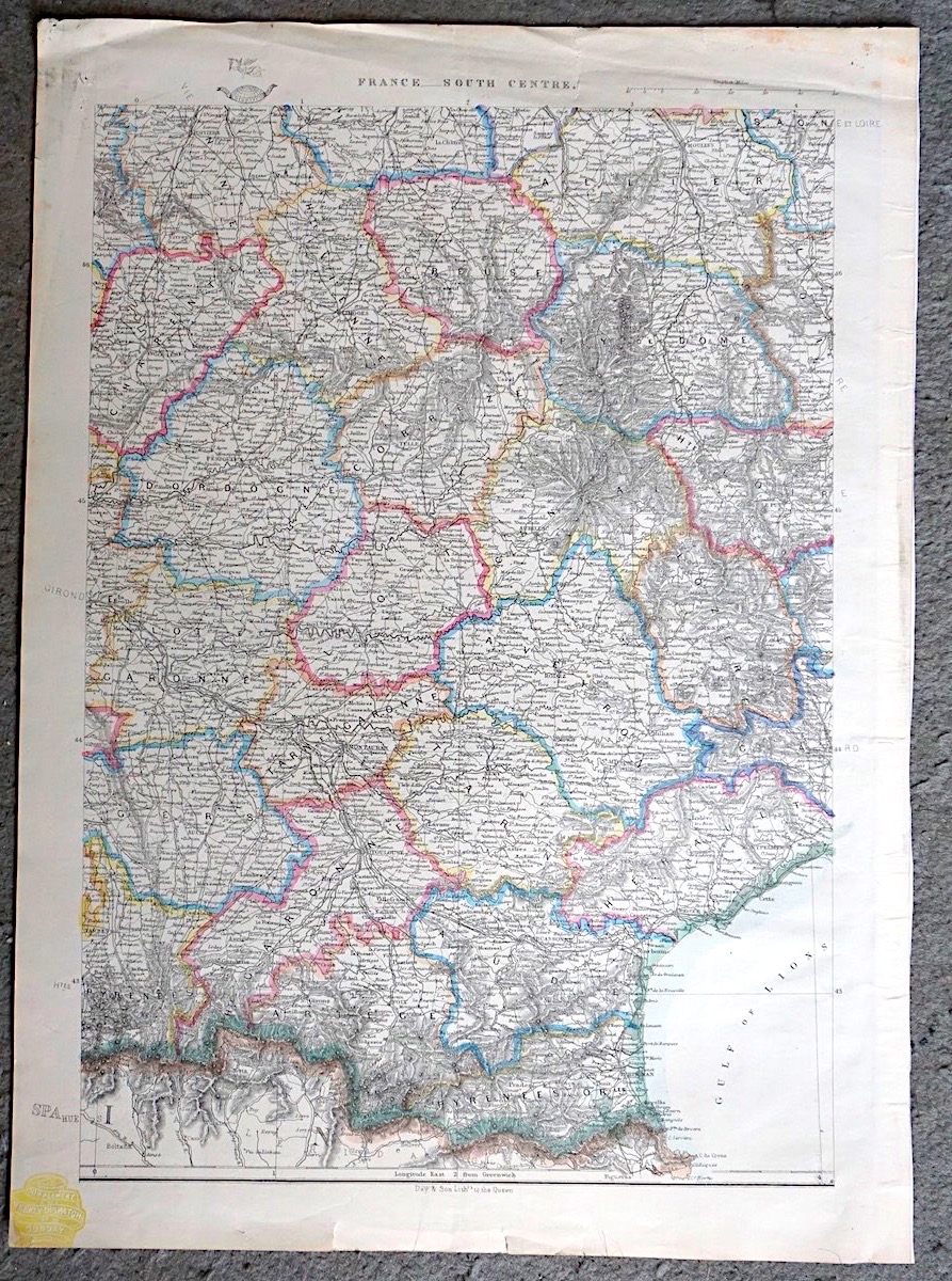 Antique Map, France, South Centre, 1859, credit Antiche Curiosità©