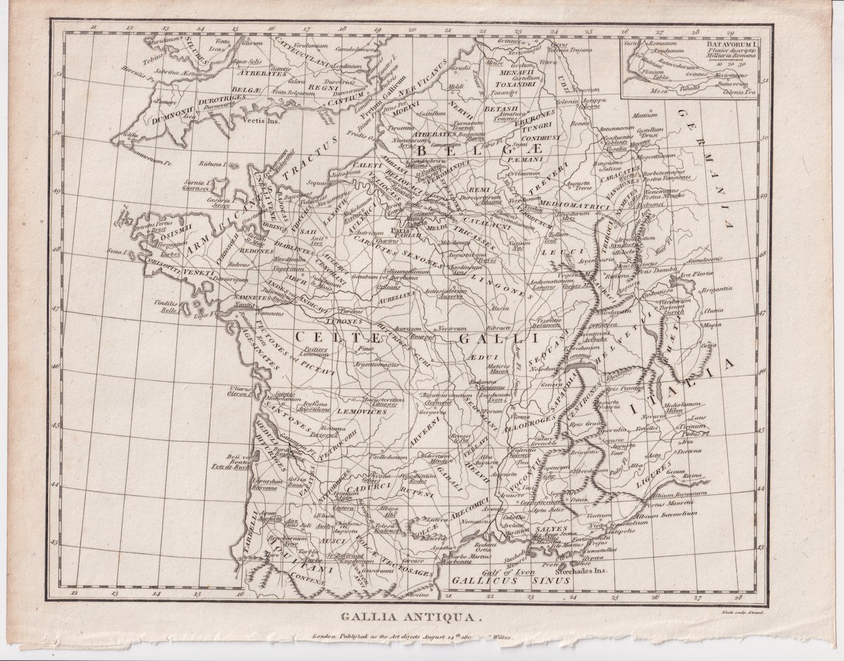 Antique Map, Gallia Antiqua, 1804, credit Antiche Curiosità©