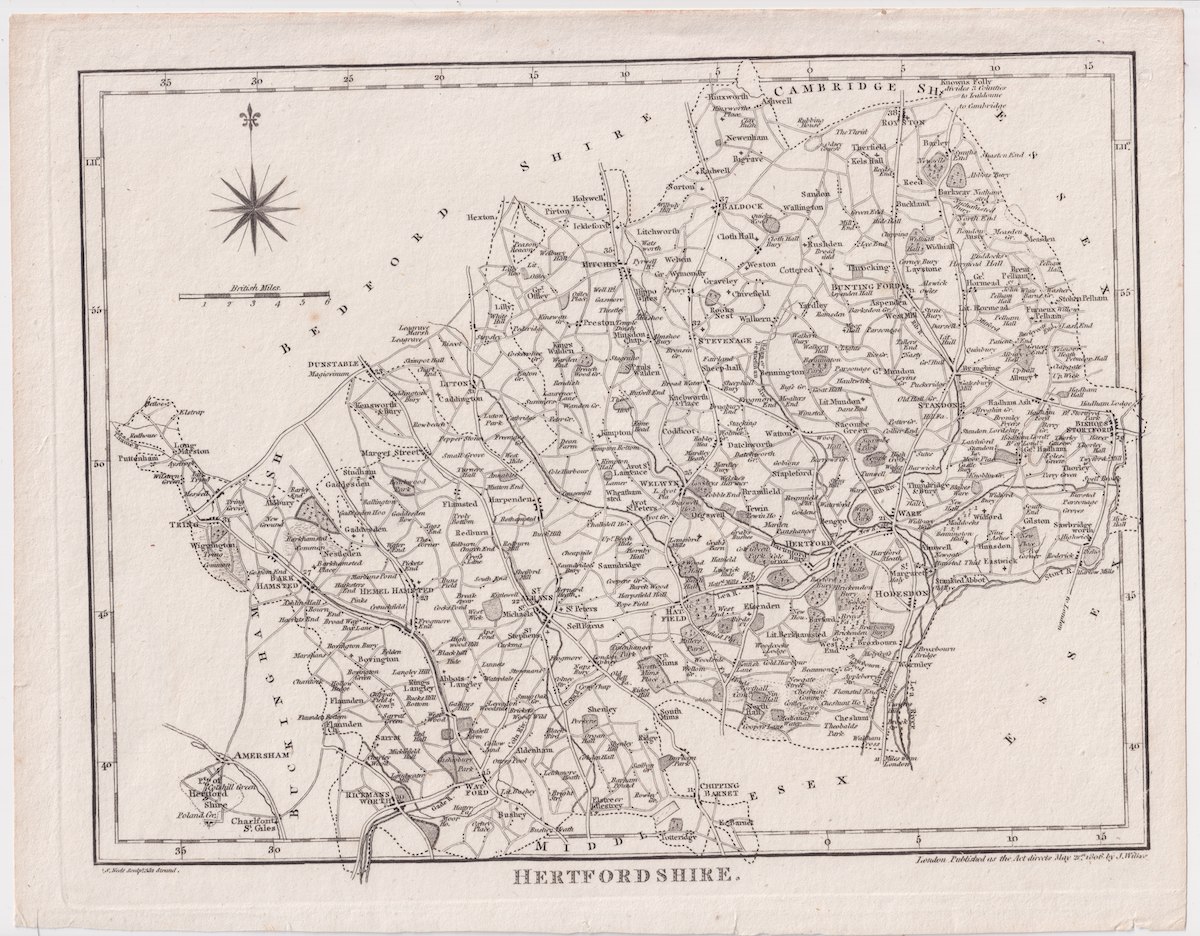 Antique Map, Hertfordshire, 1806, credit Antiche Curiosità©