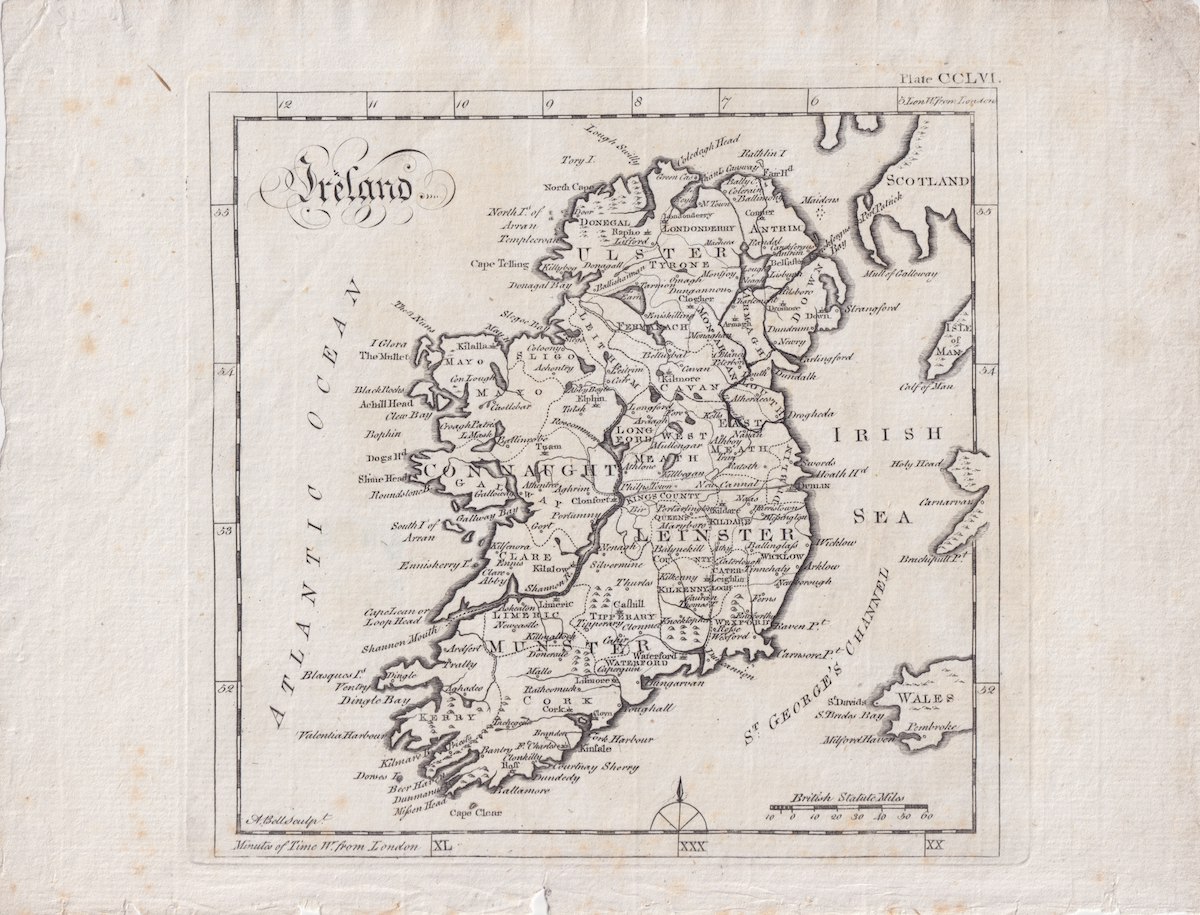 Antique Map, Ireland, 1750 ca.
