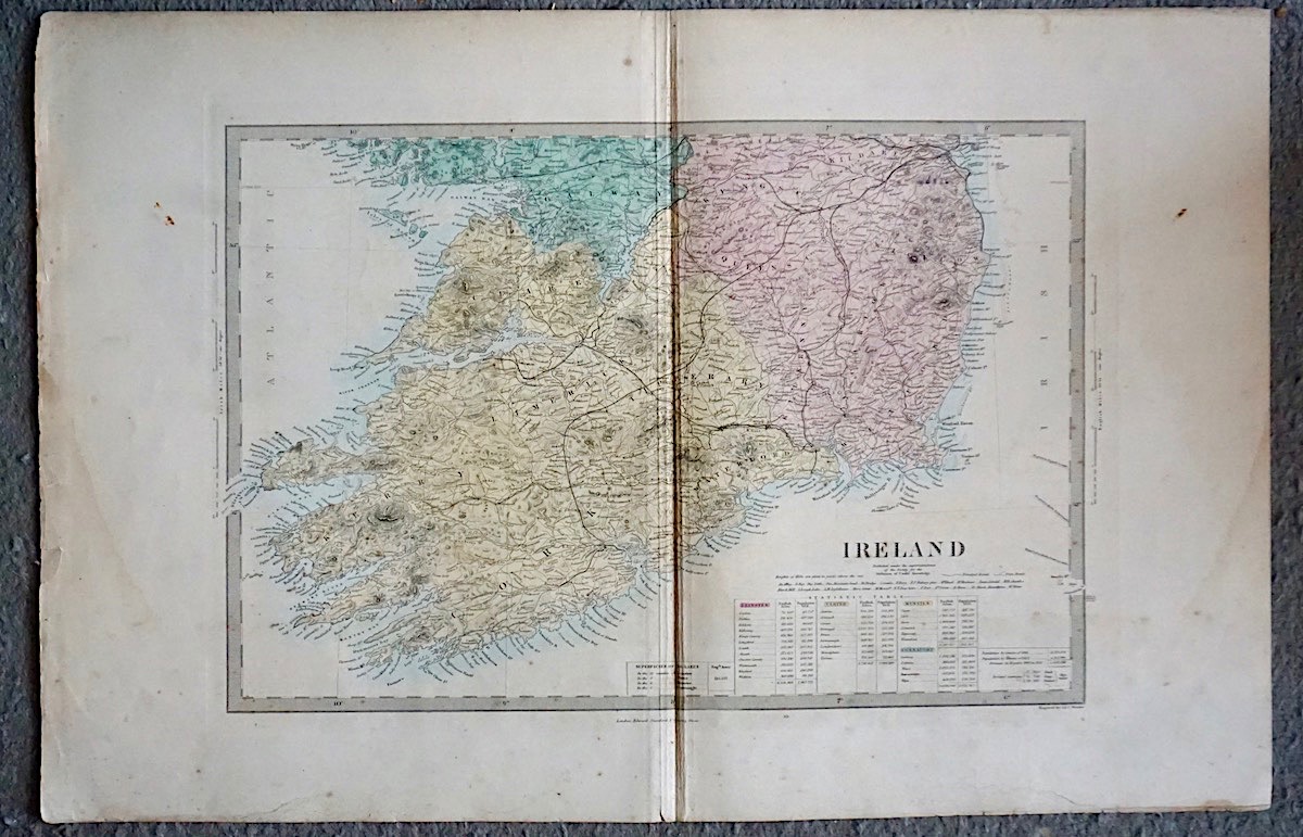 Rare Large Antique Map, Ireland, engraved by J.& C. Walker, 1860 ca. 66,8 x 43,8 cm. Foldable.